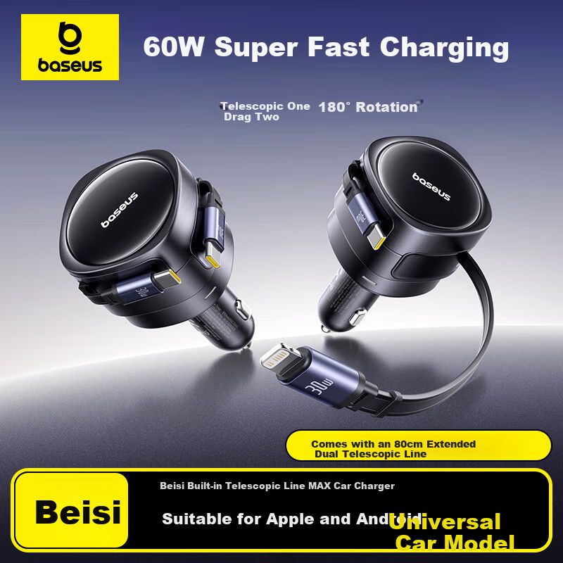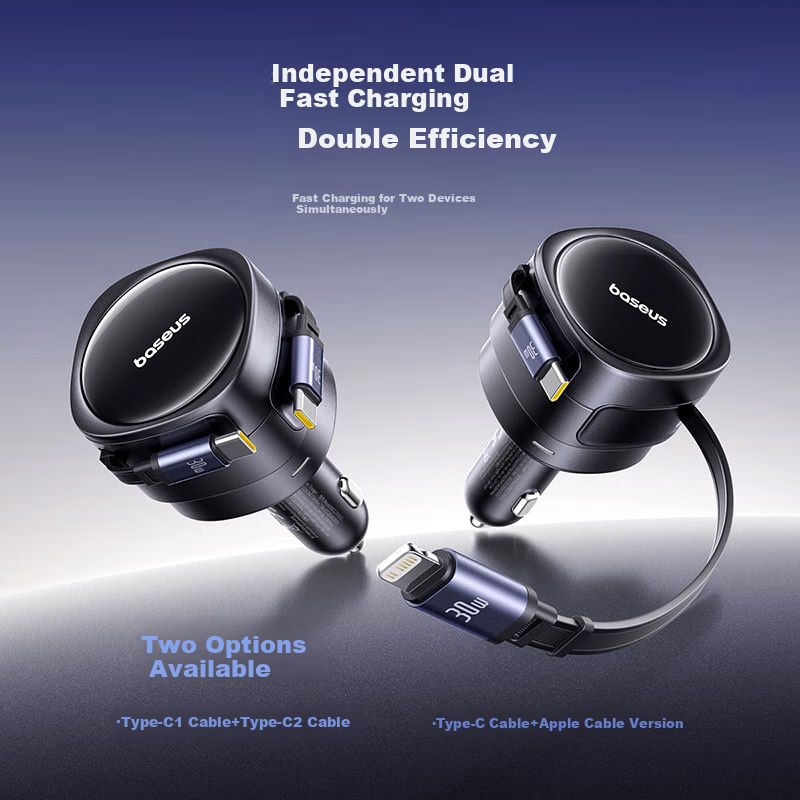 Cargador De Coche Baseus Enjoy Max C+C 60W Cable Integrado Negro