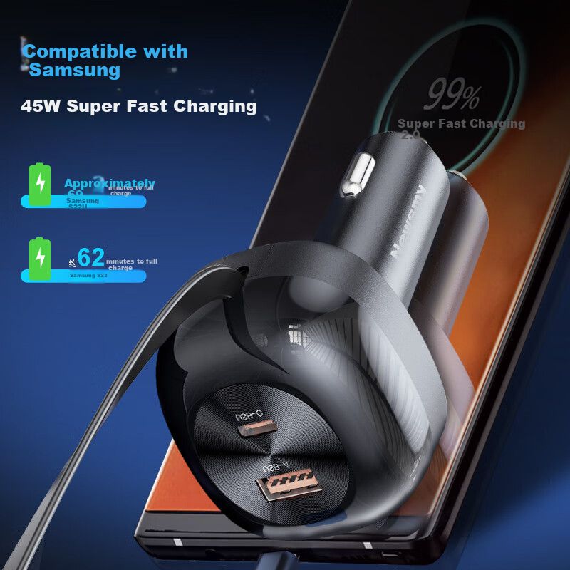 Cargador De Coche Newsmy So:Sl 000060 080088 Usb Tipo C Retráctil Negro