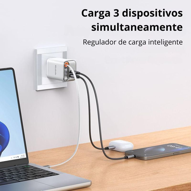 TelefoníaAccesorios para celularesCargadoresCargador GaN 67W 3 en 1 Mcdodo Con cable retractable USB-C