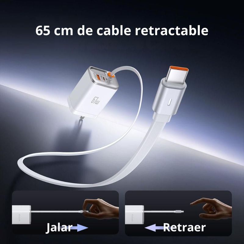 Cargador GaN 67W 3 en 1 Mcdodo Con cable retractable USB-C