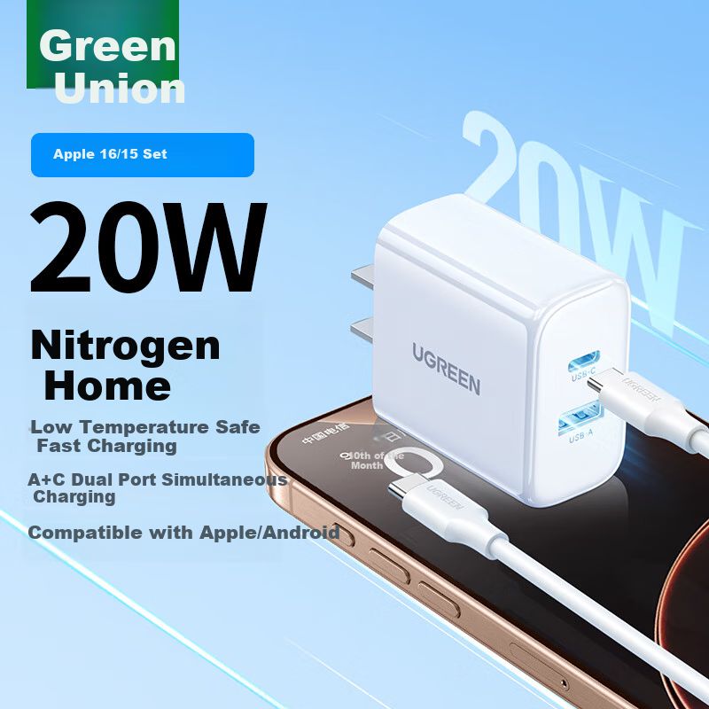 Cargador Rápido Gan 20W Ugreen Con Doble Puerto Y Cable Usb-C