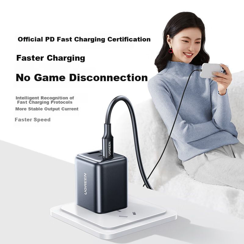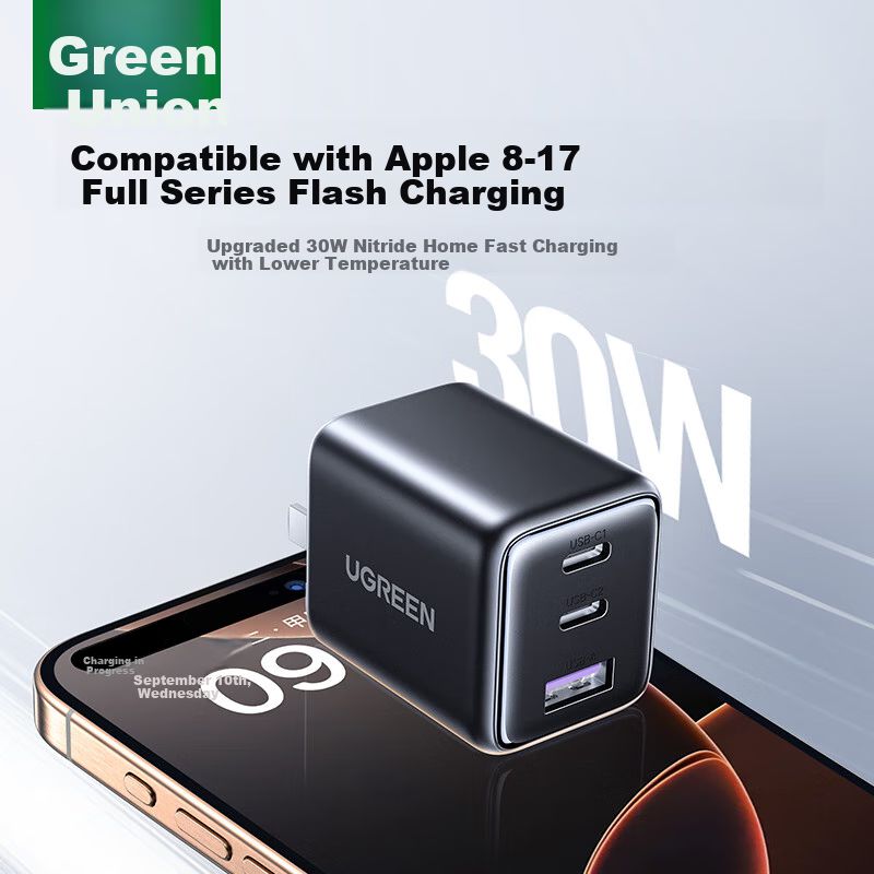 Cargador Rápido Ugreen 30W Con Tres Puertos Y Nitruro De Galio