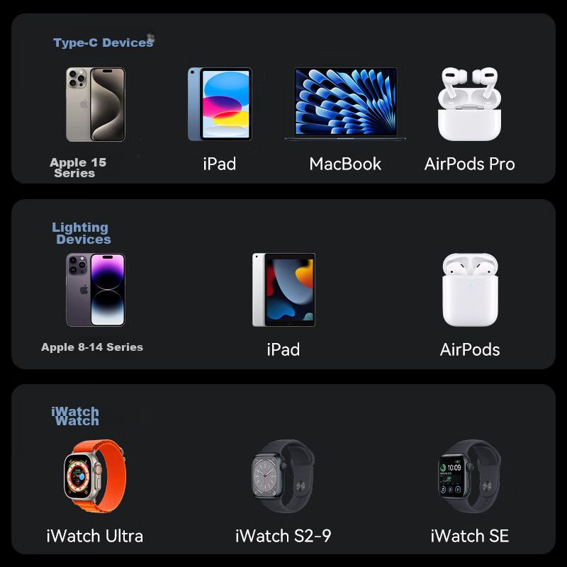 TelefoníaWearablesAccesorios para SmartwatchCargador Triple Tpe Canghua Cp29 Para Apple Watch S10/S9/8/7/Ultra2 Iphone 16 Pro Max/15/14