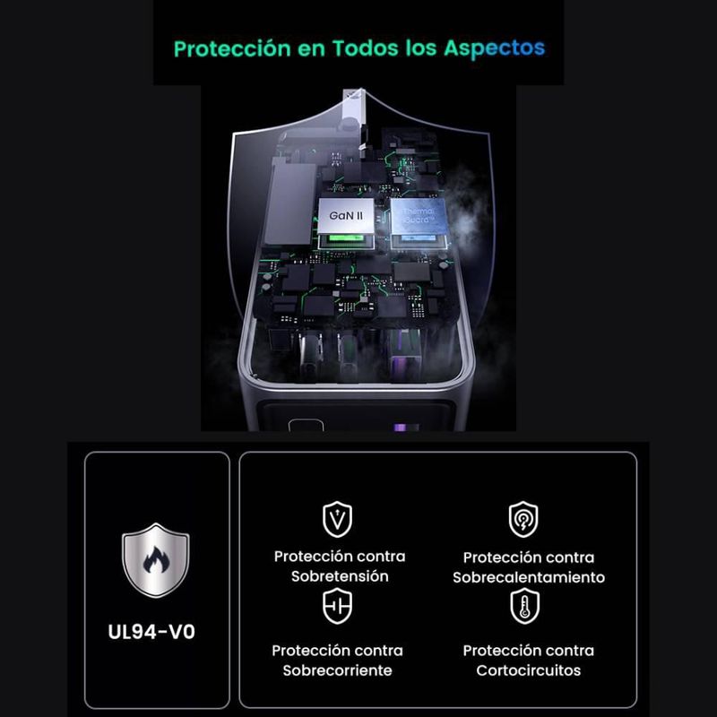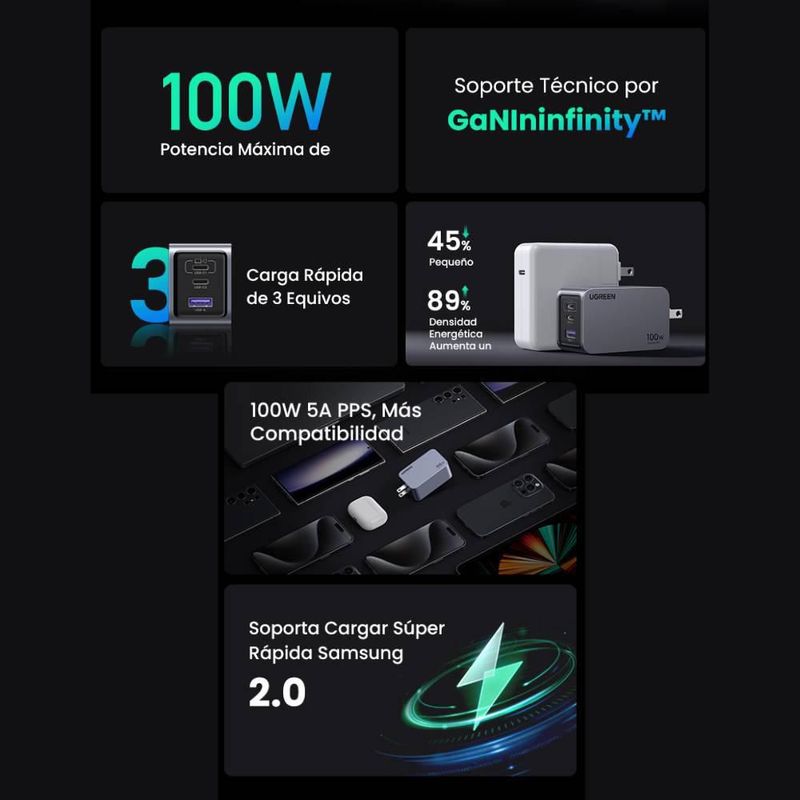 Cargador Ugreen Nexode Pro 2 Usb-C, 1 Usb-A 100W con Cable USB-C 1.5m