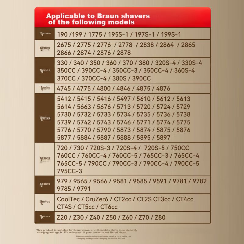 Cargador Xuanyi para rasuradoras Braun Serie 5 modelos S3-S9 Negro