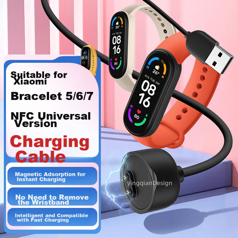 Cargador Yingqian Magnético USB para Xiaomi Mi Band 5 6 7 Negro