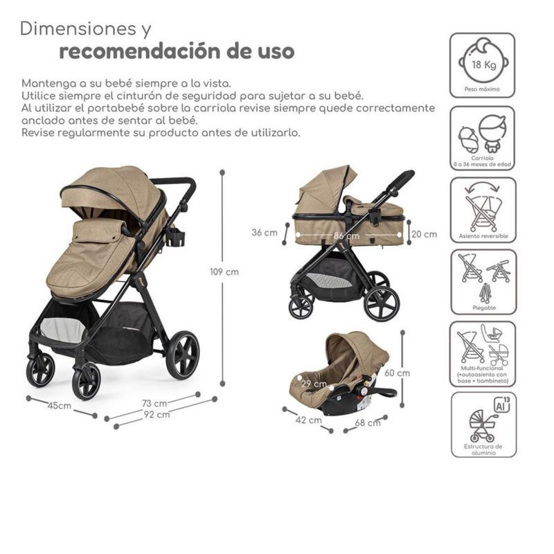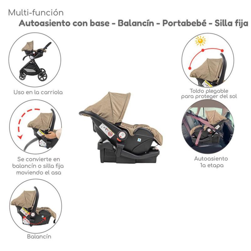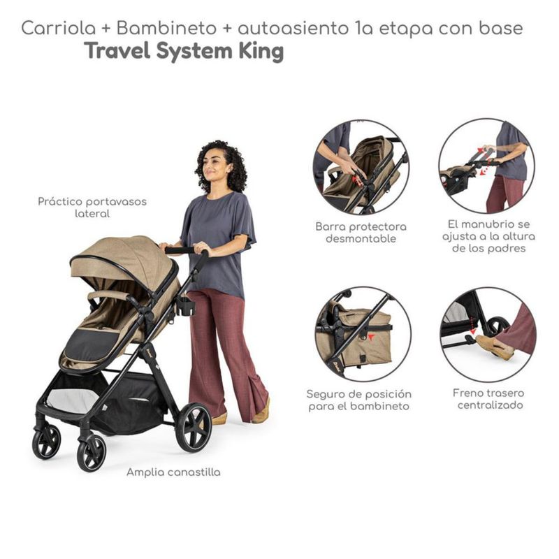 Carriola con Autoasiento y Bambineto Reclinable King D'Bebe - Beige