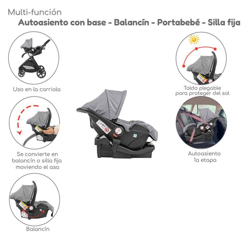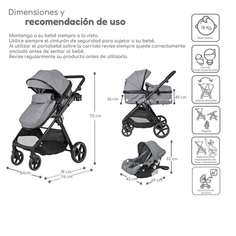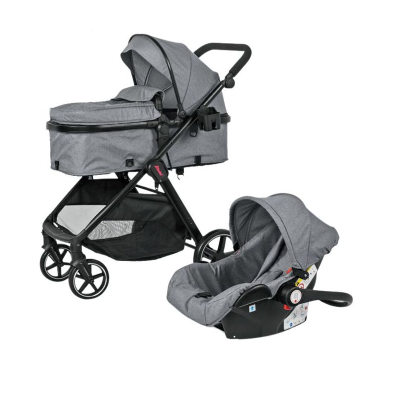 Bebés y juguetesBebésCarriolasCarriola con Autoasiento y Bambineto Reclinable King D'Bebe - Gris