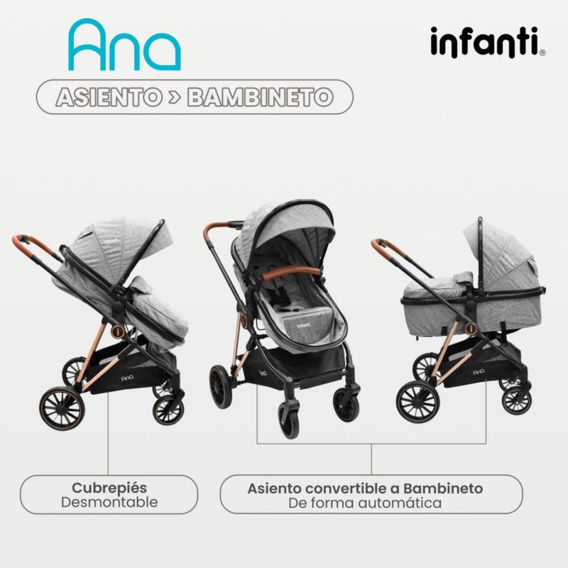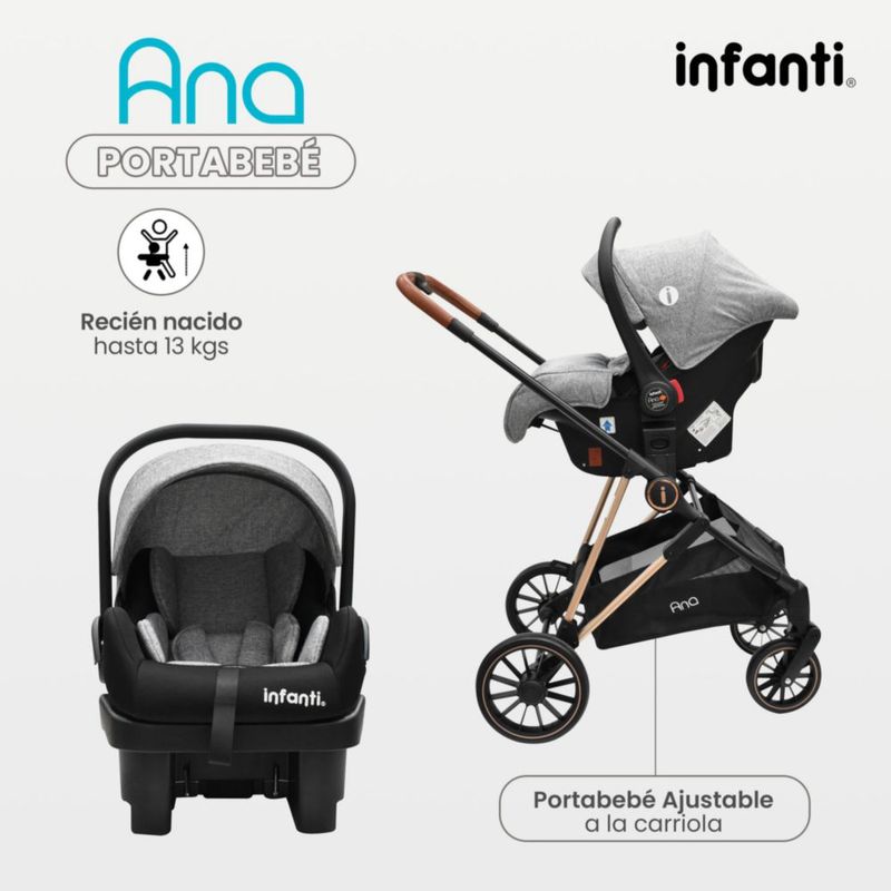 Carriola Con Portabebé Infanti Ana Plegado Compacto Gris