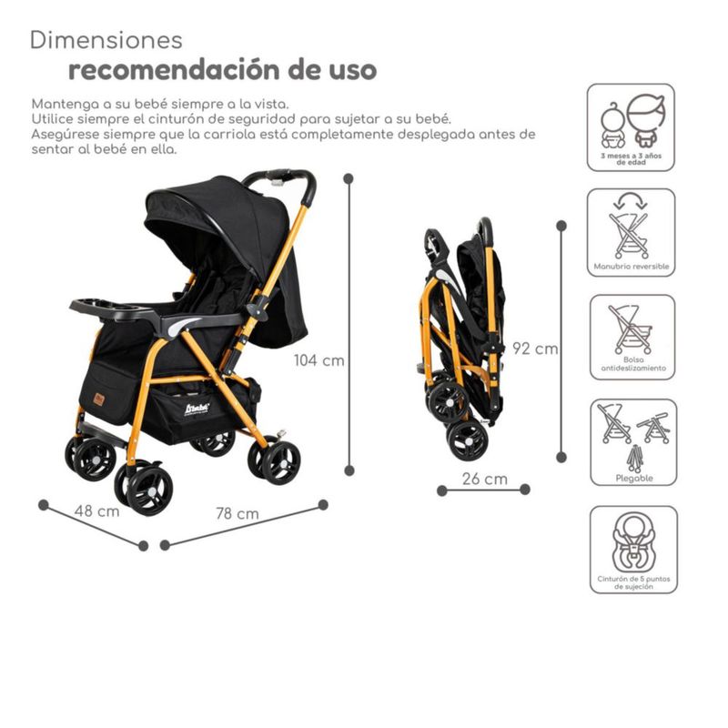 Carriola D'bebé Lal Plegable Reversible Con Portavasos Negro