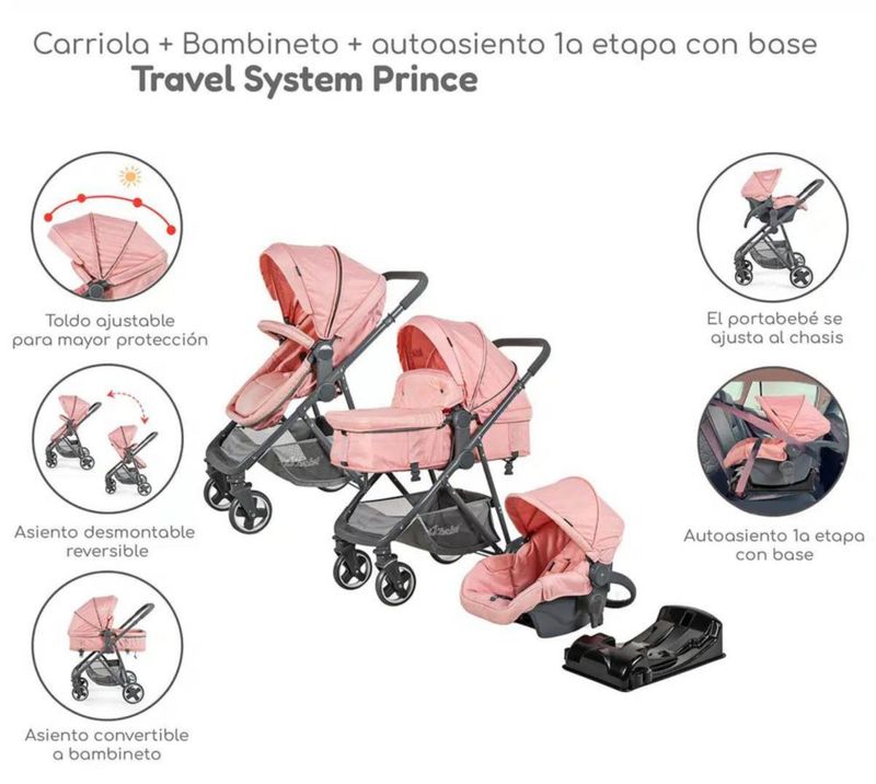 Carriola D'bebé Travel System Prince Con Autoasiento Rosa