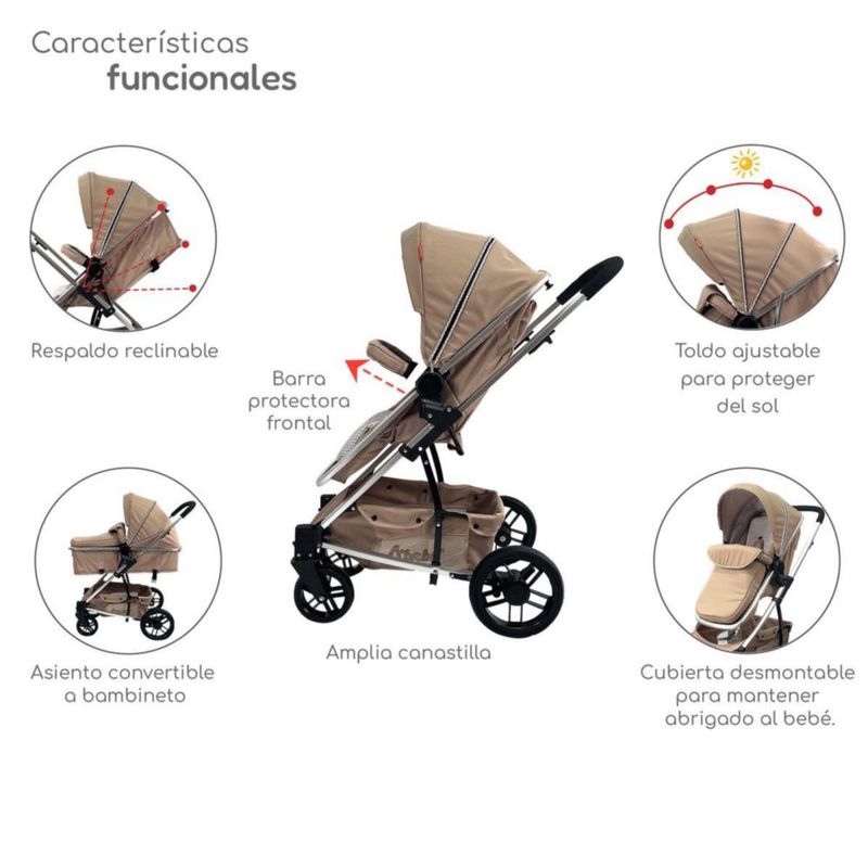 Bebés y juguetesBebésCarriolasCarriola D'bebé Crown Portabebe Base De Carro Bambineto Khaki