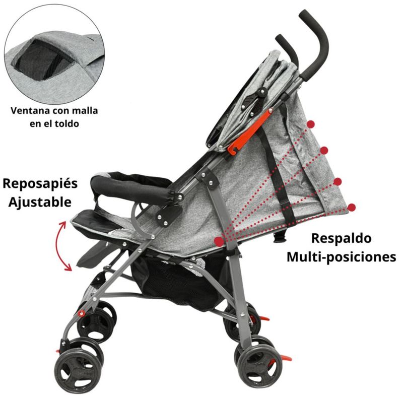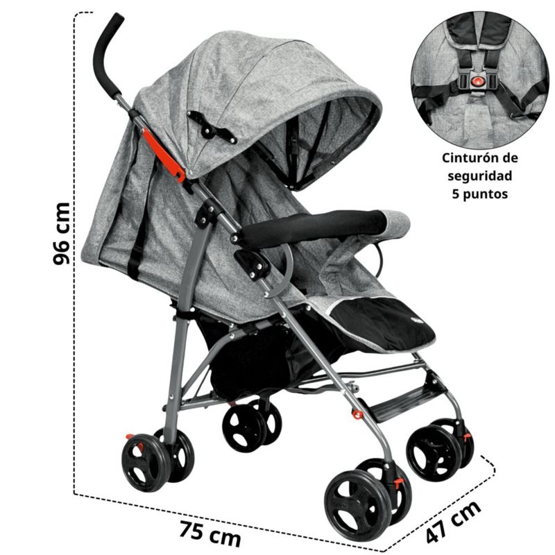 Carriola de Bastón para Bebé Asiento Multiposiciones Ruedas con Freno Cinturón de 5 Puntos Soporta hasta 15 kg - Gris