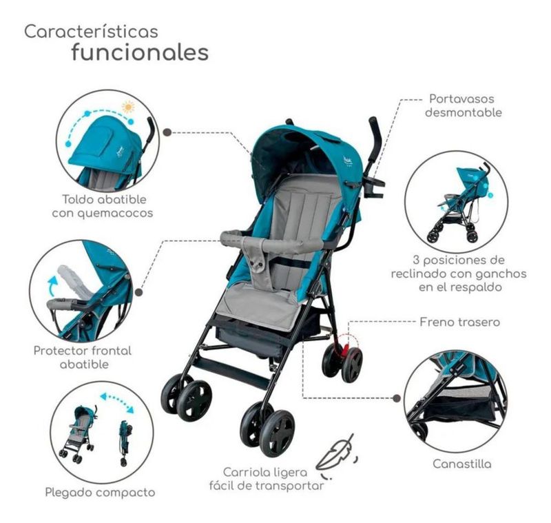 Carriola De Bastón Para Bebé D'bebé Carry Compacta Y Ligera Azul