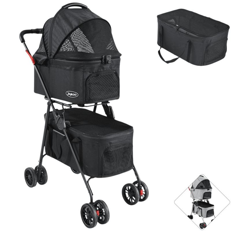 MascotasPerrosJaulas, Transportadoras y CasasCarriola Doble para Mascotas Cochecito para Perros y Gatos Pequeños - Medianos Transportadora Ligera y Plegable Ruedas con Freno Negro