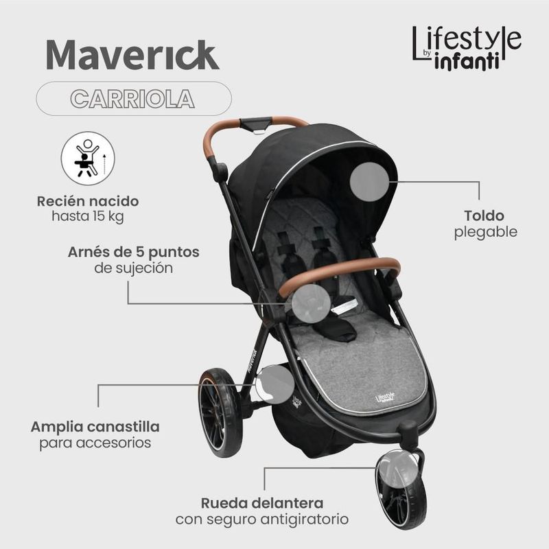 Bebés y juguetesBebésCarriolasCarriola Lifestyle By Infanti Maverick Color Gris Sistema de Viaje