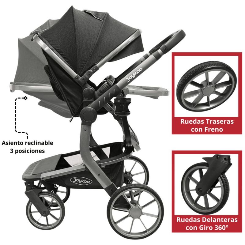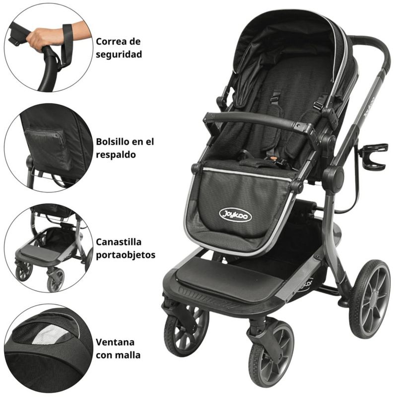 Carriola para Bebé Asiento Reversible Bambineto Acolchado Ruedas de Goma Plegable Cinturón de Seguridad - Negro