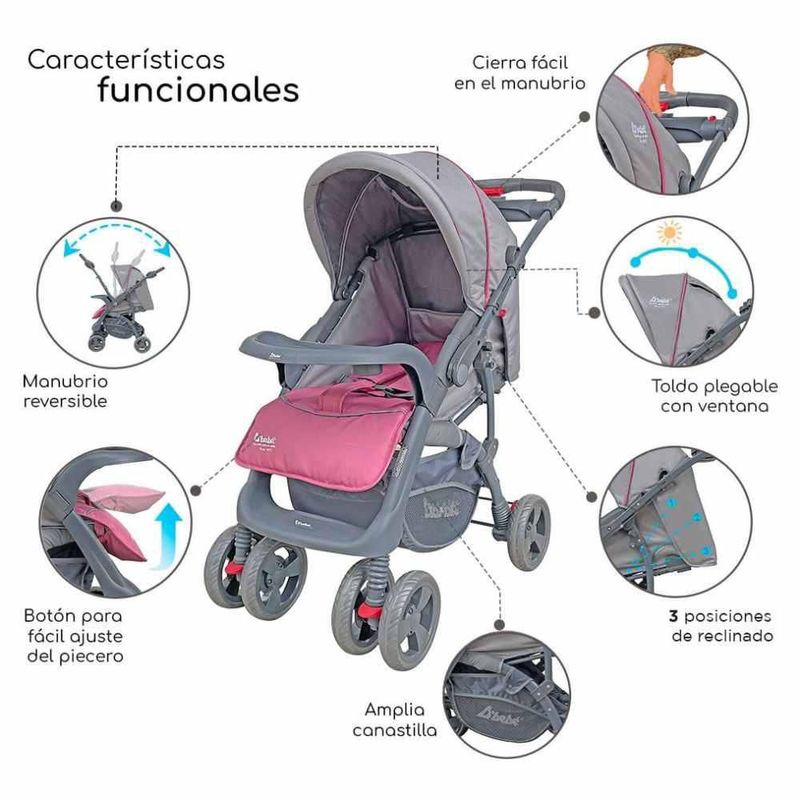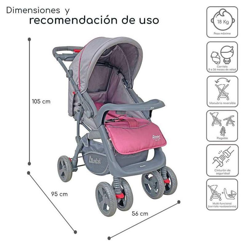 Carriola Para Bebé de Viaje Autoasiento Reversible Reclinable Rosa