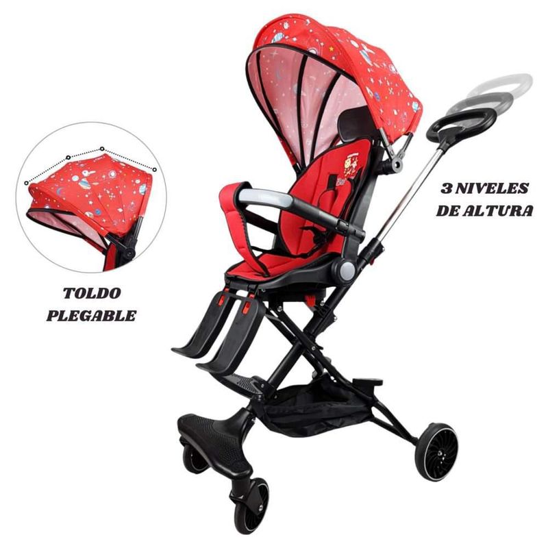 Carriola para Bebé Giratoria,Frenos,Plegable y Reclinable Rojo