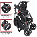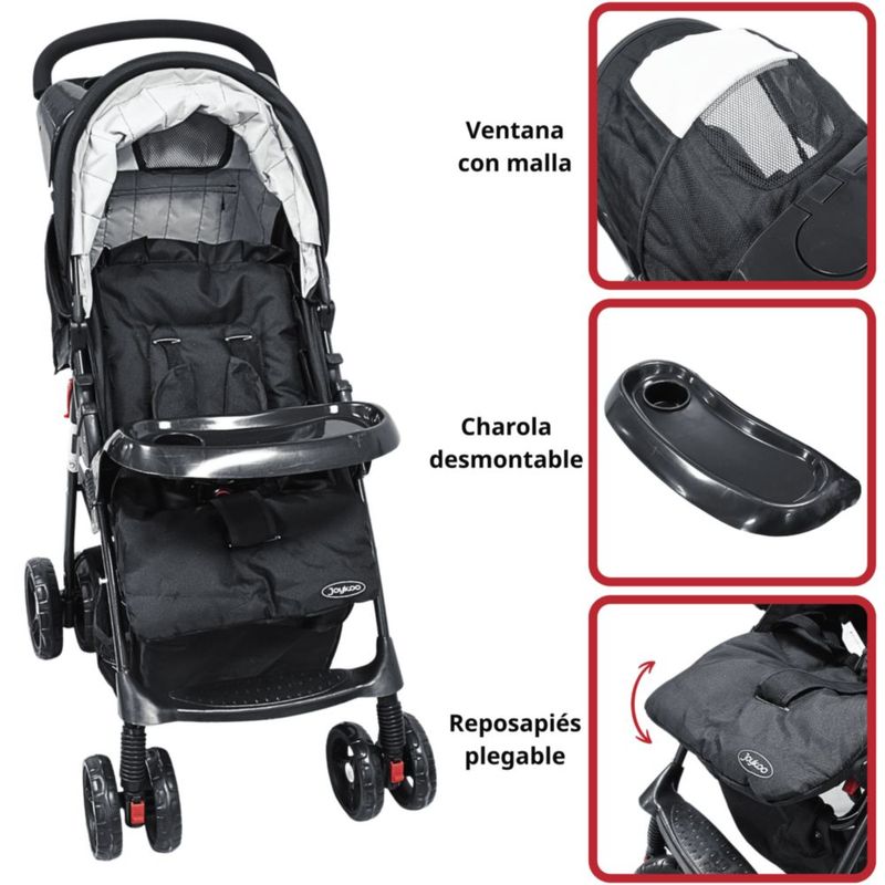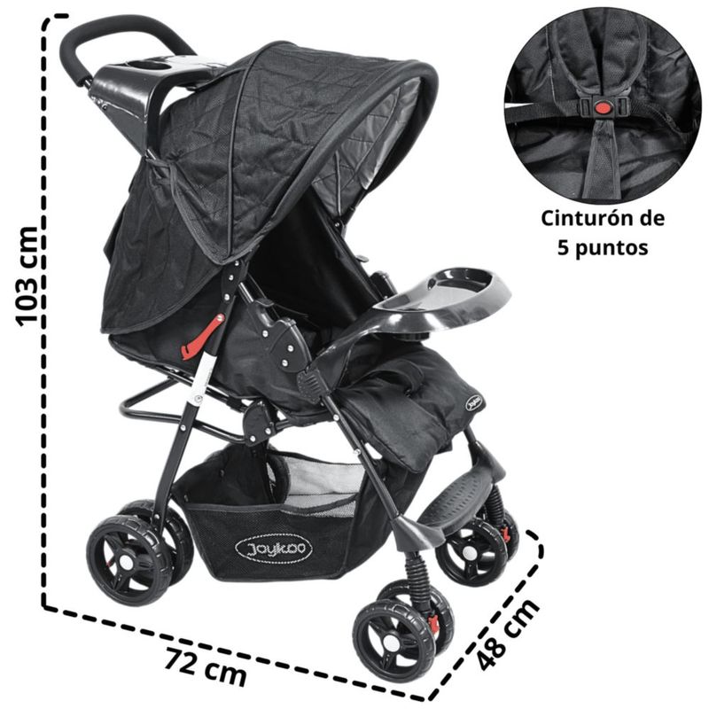 Carriola para Bebé Ligera y Plegable Asiento Reclinable Cinturón de 5 Puntos Charola Toldo Apta desde 6 Meses Hasta 18 kg - Negro
