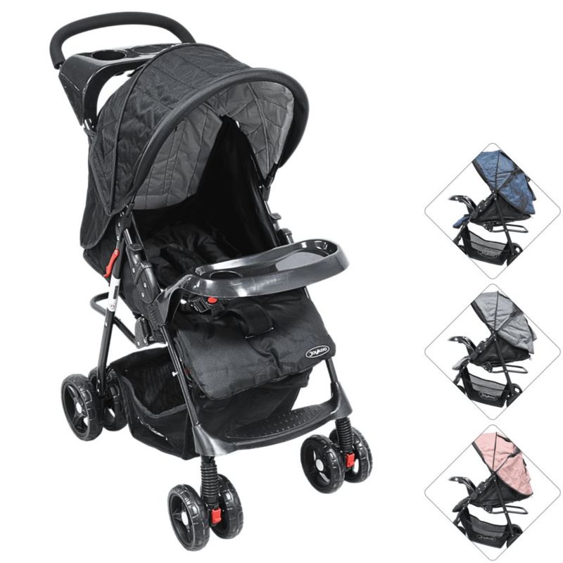 Bebés y juguetesBebésCarriolasCarriola para Bebé Ligera y Plegable Asiento Reclinable Cinturón de 5 Puntos Charola Toldo Apta desde 6 Meses Hasta 18 kg - Negro