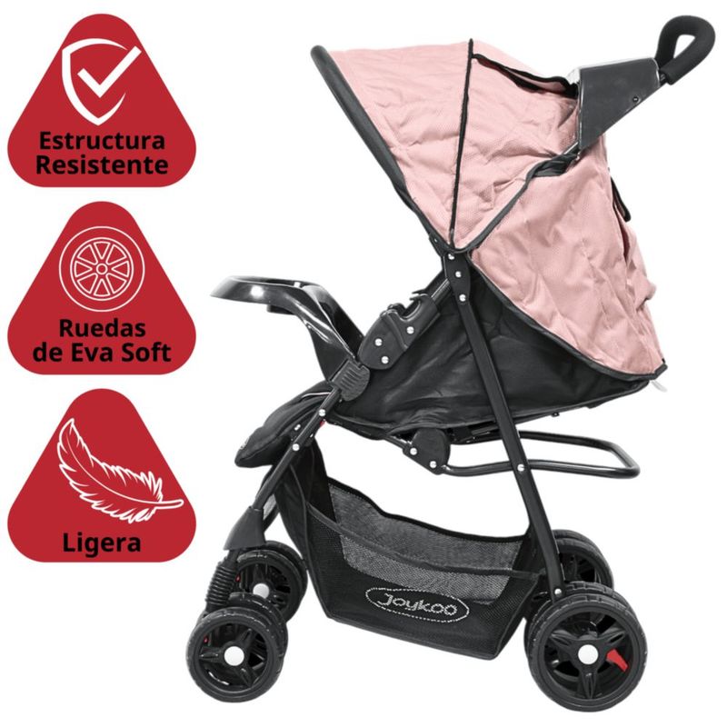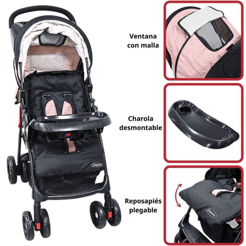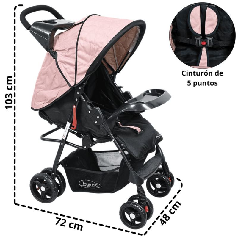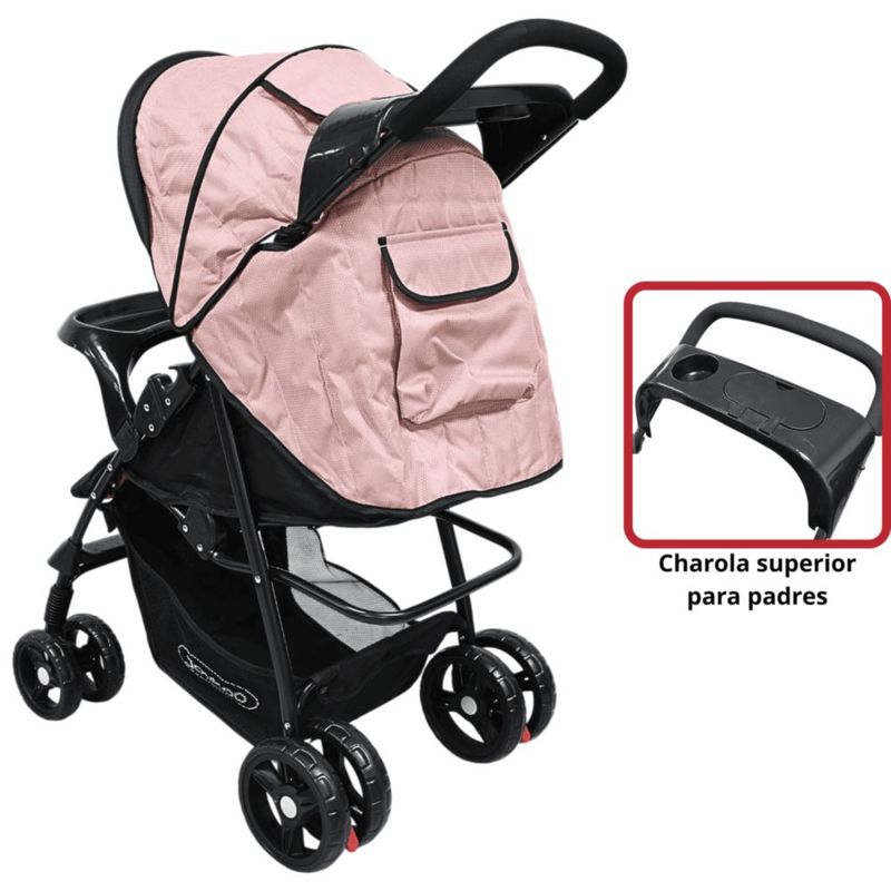 Carriola para Bebé Ligera y Plegable Asiento Reclinable Cinturón de 5 Puntos Charola Toldo Apta desde 6 Meses Hasta 18 kg - Rosa