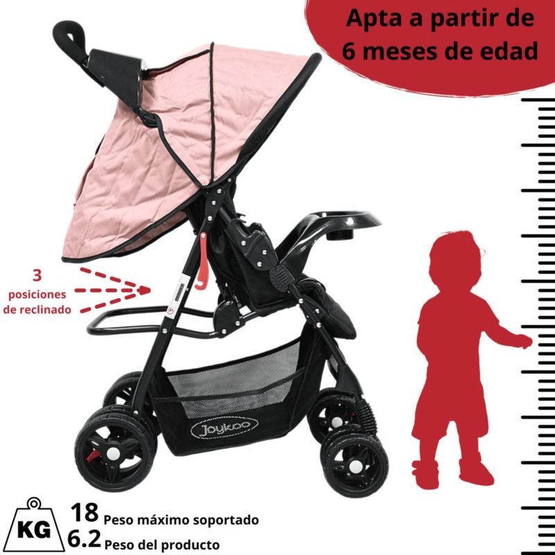 Bebés y juguetesBebésCarriolasCarriola para Bebé Ligera y Plegable Asiento Reclinable Cinturón de 5 Puntos Charola Toldo Apta desde 6 Meses Hasta 18 kg - Rosa