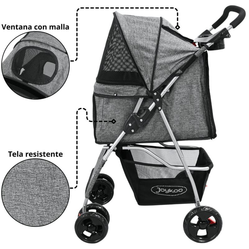MascotasPerrosJaulas, Transportadoras y CasasCarriola para Mascotas Cochecito para Perros y Gatos Pequeños - Medianos Plegable Cesta de Almacenamiento Ruedas con Freno - Negro