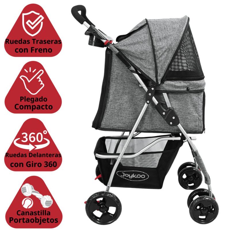 Carriola para Mascotas Cochecito para Perros y Gatos Pequeños - Medianos Plegable Cesta de Almacenamiento Ruedas con Freno - Negro