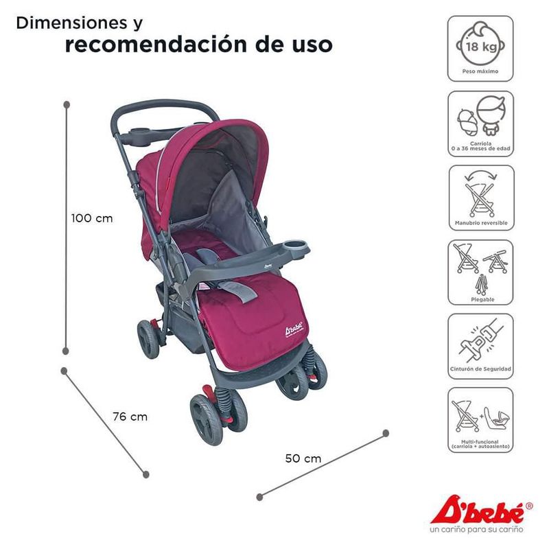 Carriola Travel System Dbebe Reversible Portabebe Reclinable Rosa