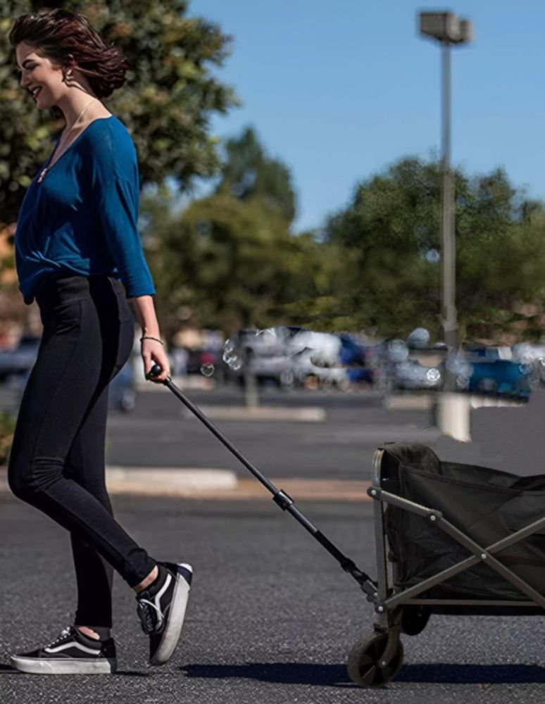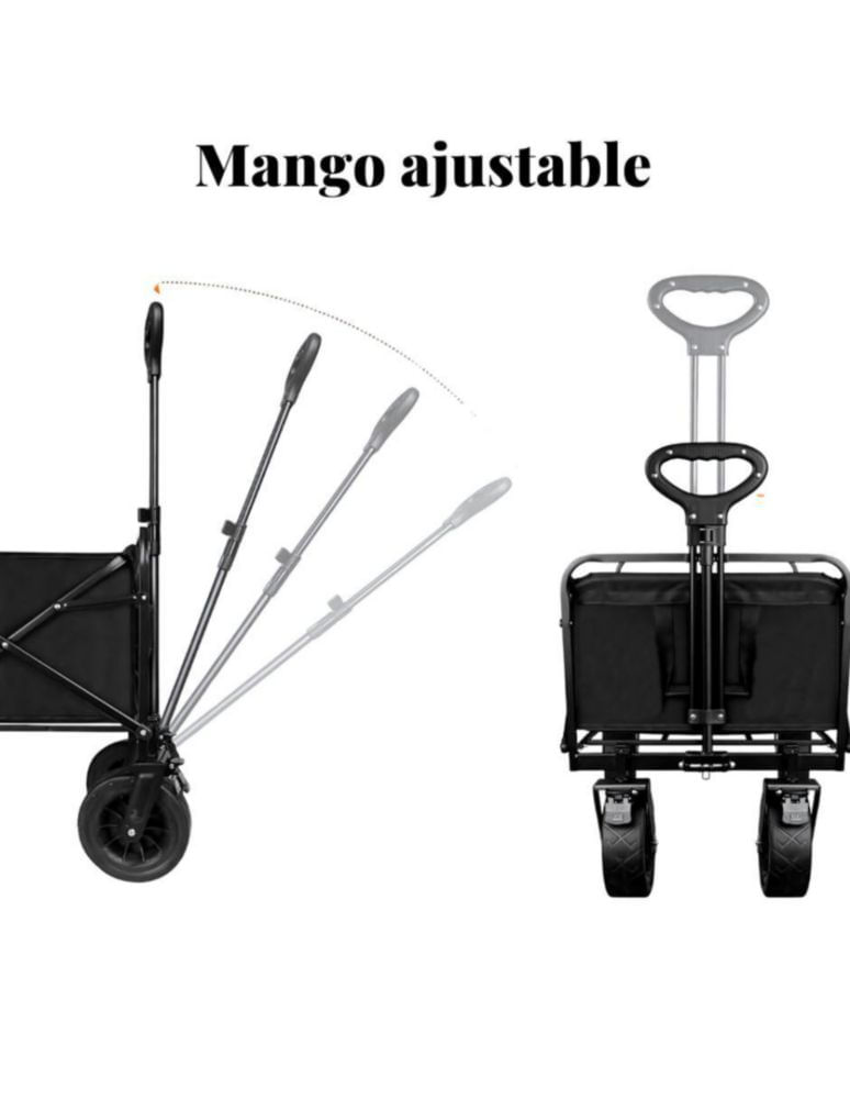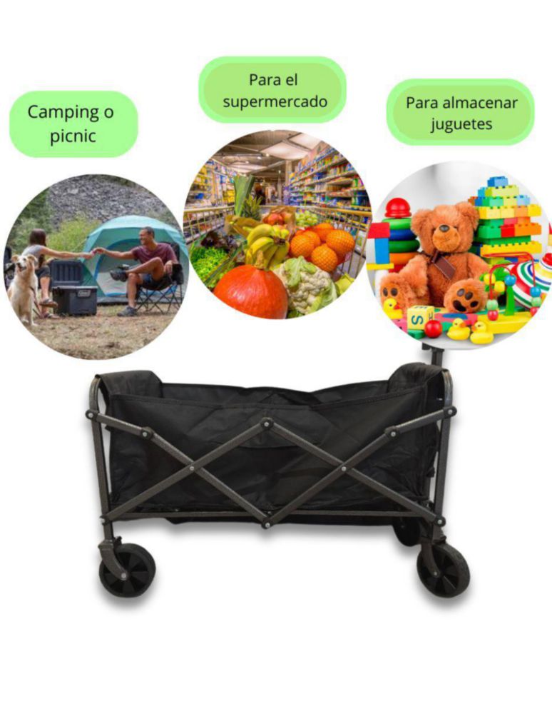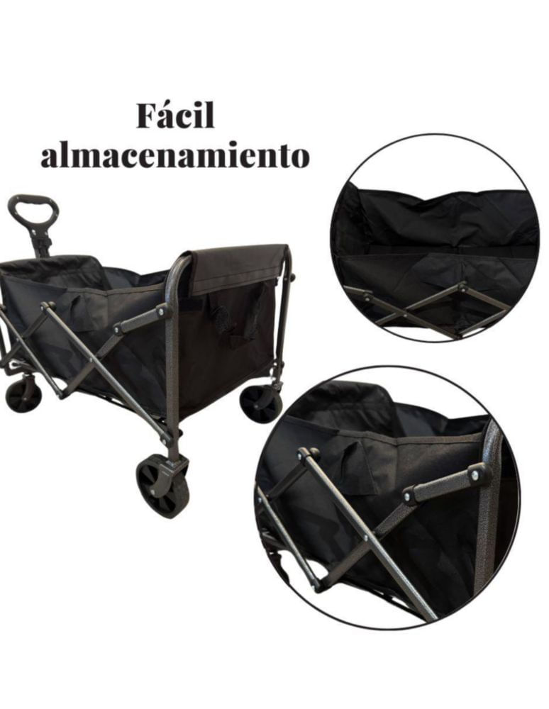 Carrito Plegable de Transporte con Ruedas, Estructura de Metal Resistente, Color Negro