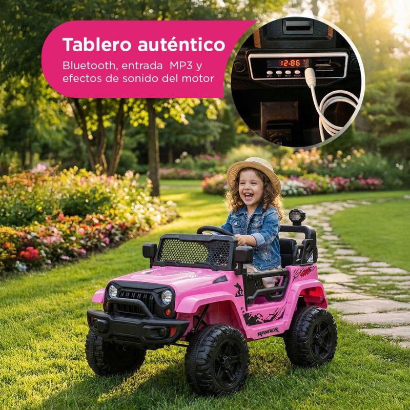 Carro Eléctrico Todoterreno Rogue Vanlig Faros LED MP3 Bluetooth Suspensión De Resorte Velocidades Ajustables Montable Infantil Luz y Sonido Rosa