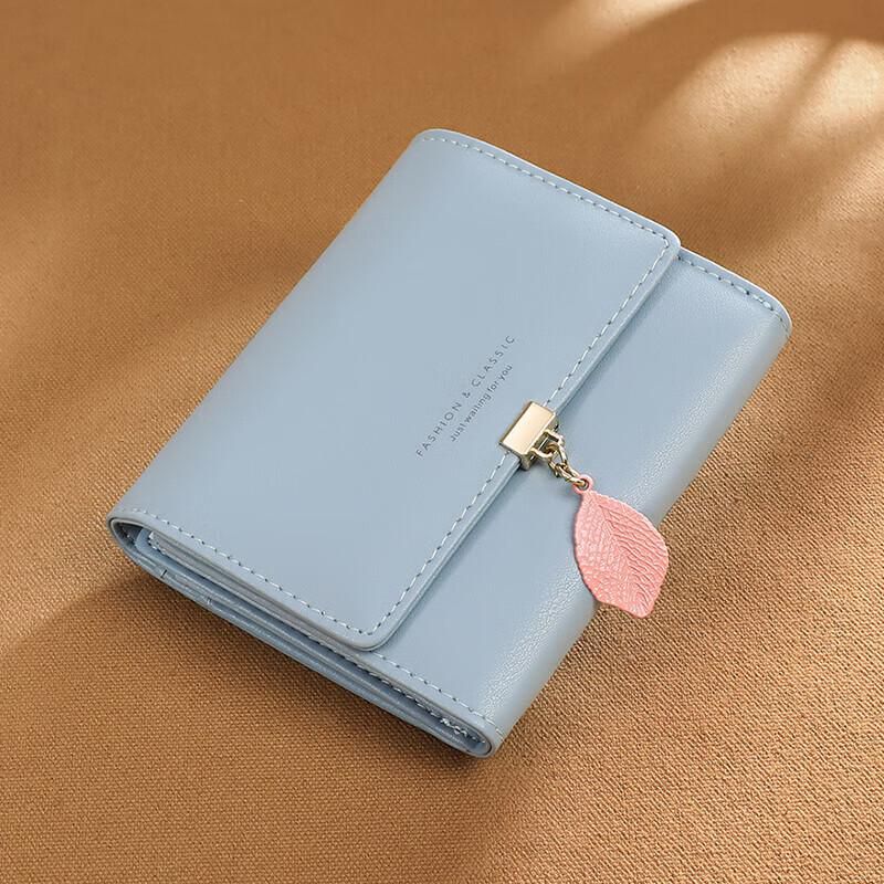 Moda y accesoriosBolsas y CarterasCarterasCartera corta Mujer Plegable de Piel color Azul Claro