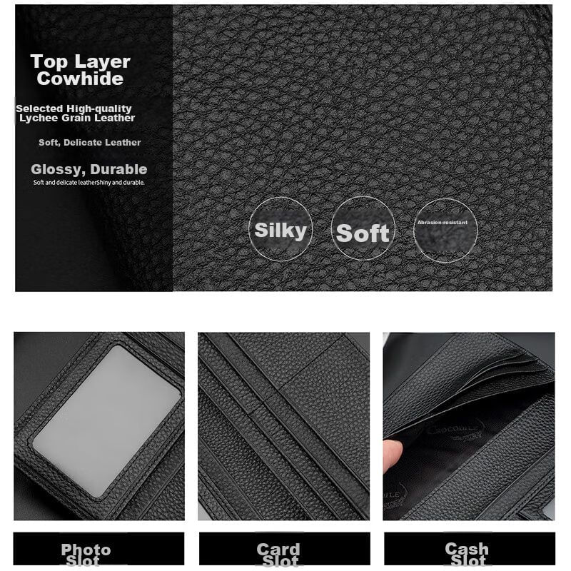 Cartera Crocodile CE1CT1687 de Cuero Genuino Negra para Hombre