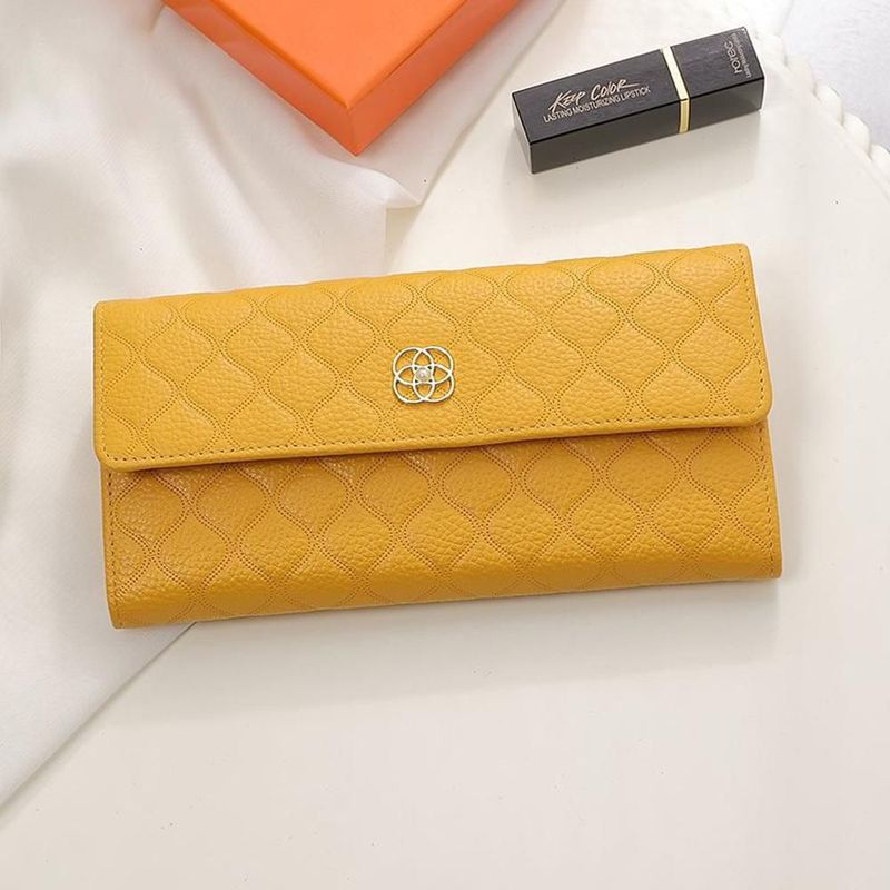 Cartera de mujer con diseño de trébol de cuatro hojas larga tejido de semicuero Amarillo HOGAWAY