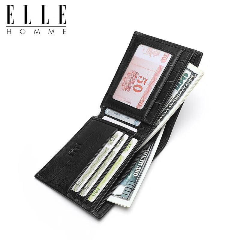 Moda y accesoriosBolsas y CarterasCarteras para HombreCartera ELLE HOMME de piel de vaca negra con clip multifuncional para hombre