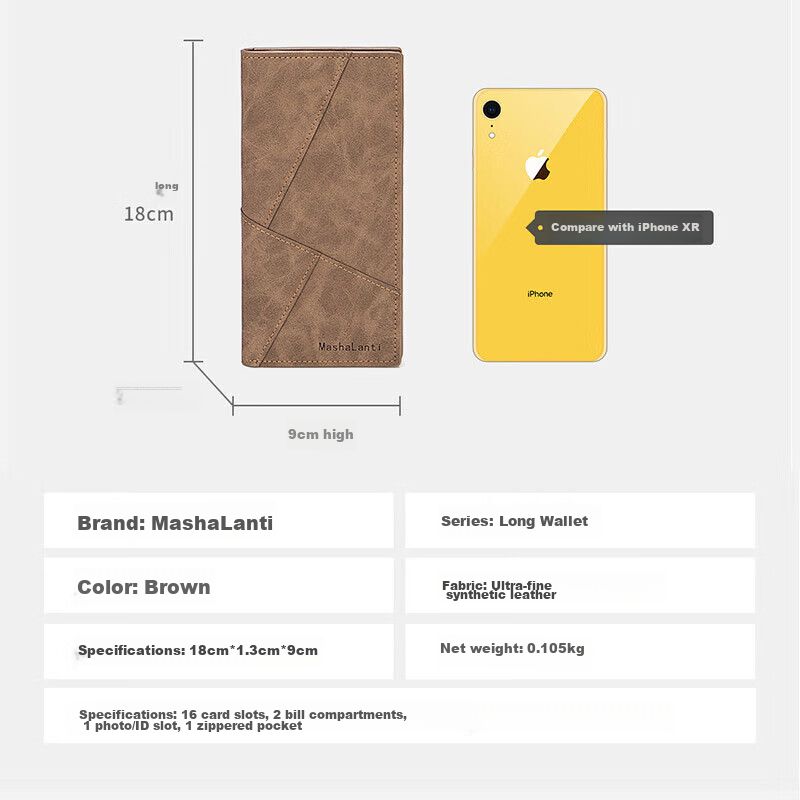 Cartera Larga MashaLanti de Cuero Sintético Café para Hombre