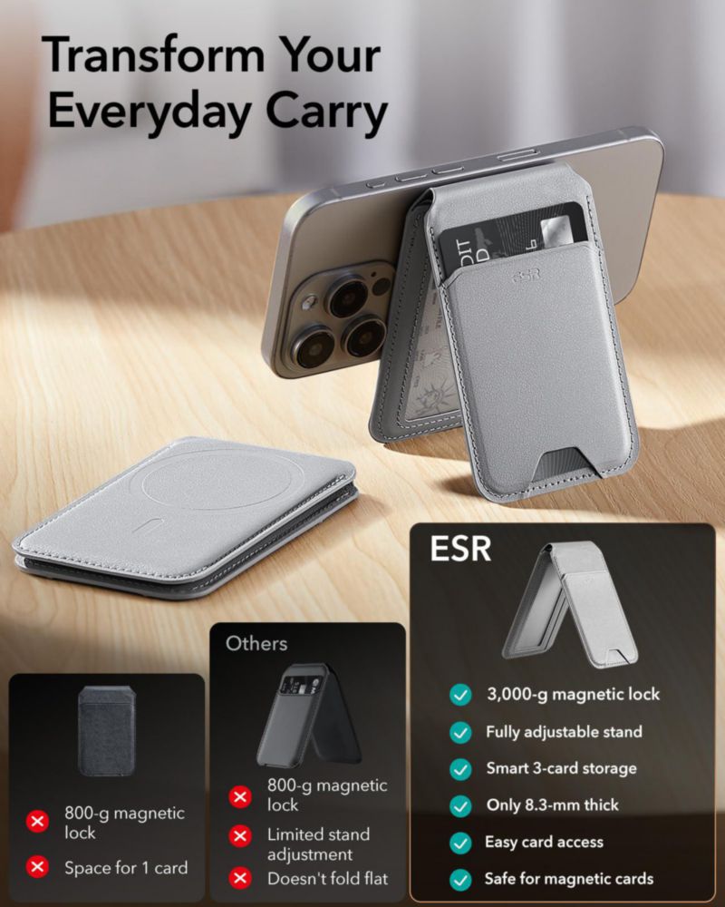 Cartera magnética ESR HaloLock para iPhone 16/15/14/13/12 gris