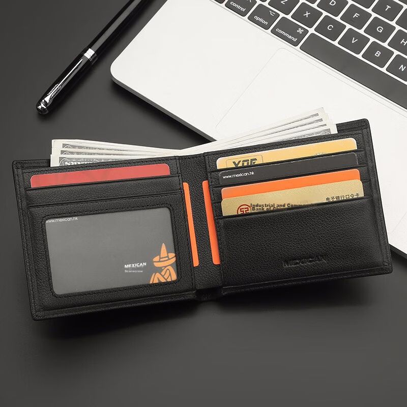 Moda y accesoriosBolsas y CarterasCarteras para HombreCartera MEXICAN Scarecrow de piel de vaca negra para hombre