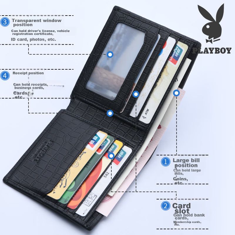 Cartera PLAYBOY Corta de Piel de Oveja Negra para Hombre