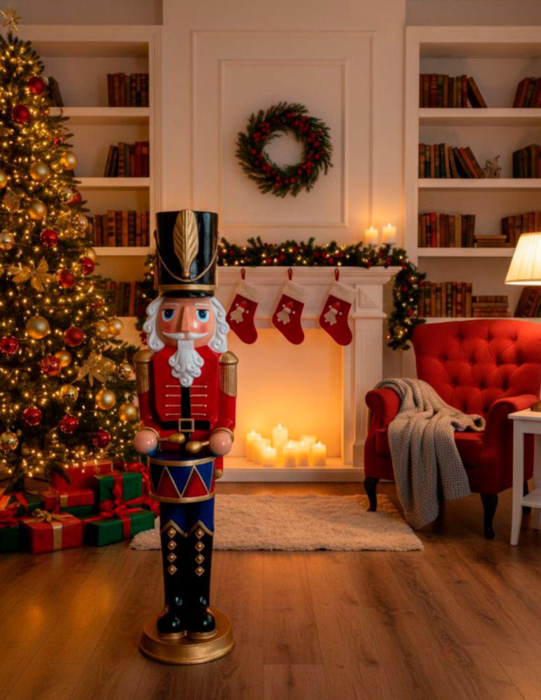 HogarDecoraciónAdornos de NavidadCascanueces de fibra de vidrio 1 metro de altura, rojo con azul