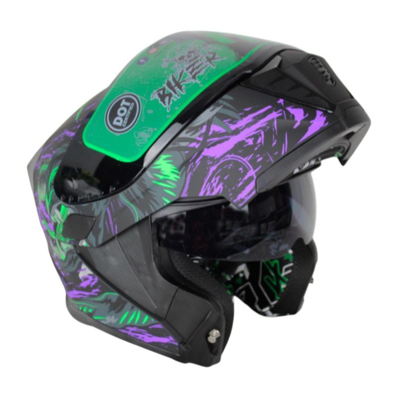 Casco abatible FORCE para moto, certificado DOT, Black-Neon, Talla L
