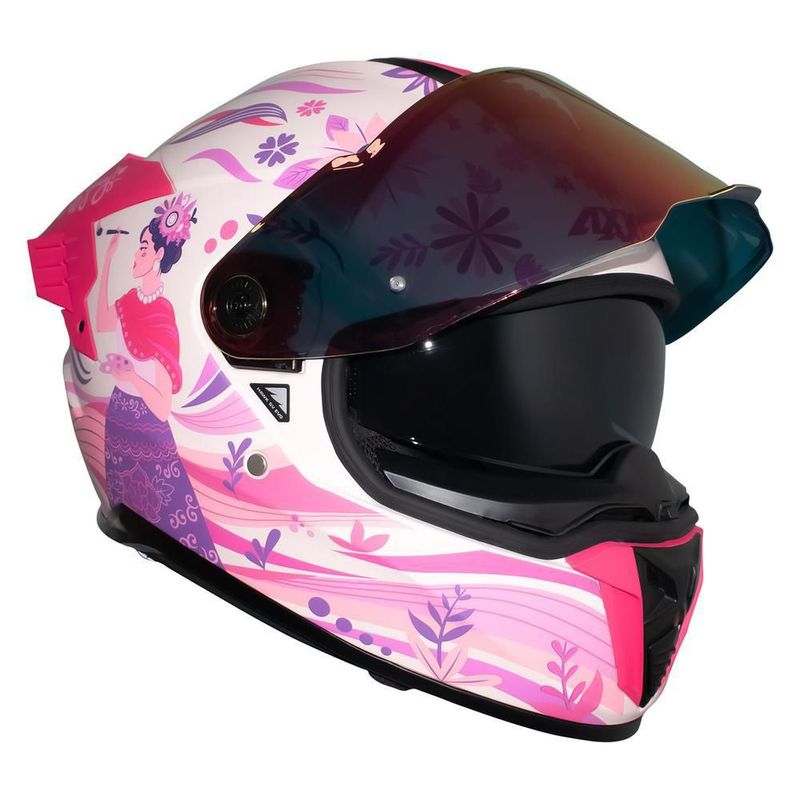 Casco moto rosa axxis pintora frida kahlo talla m ¡ay güey!