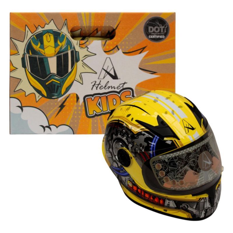 Casco Para Moto Cerrado Infantil Pocket Race A-Helmet Visor Transparente Certificado Dot Amarillo Brillante Talla L