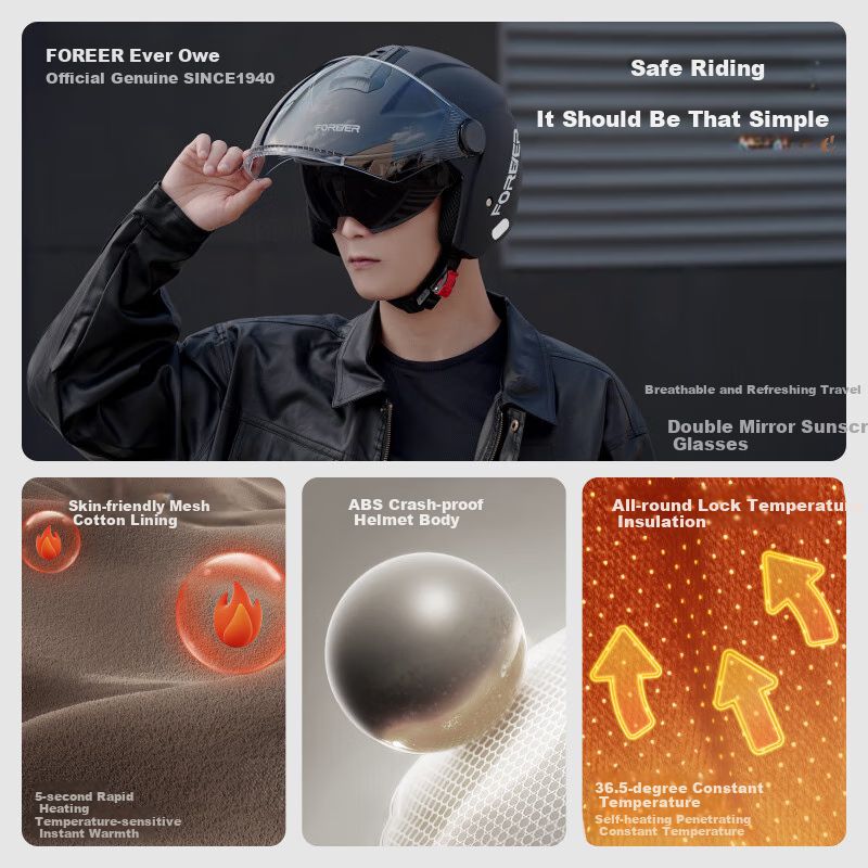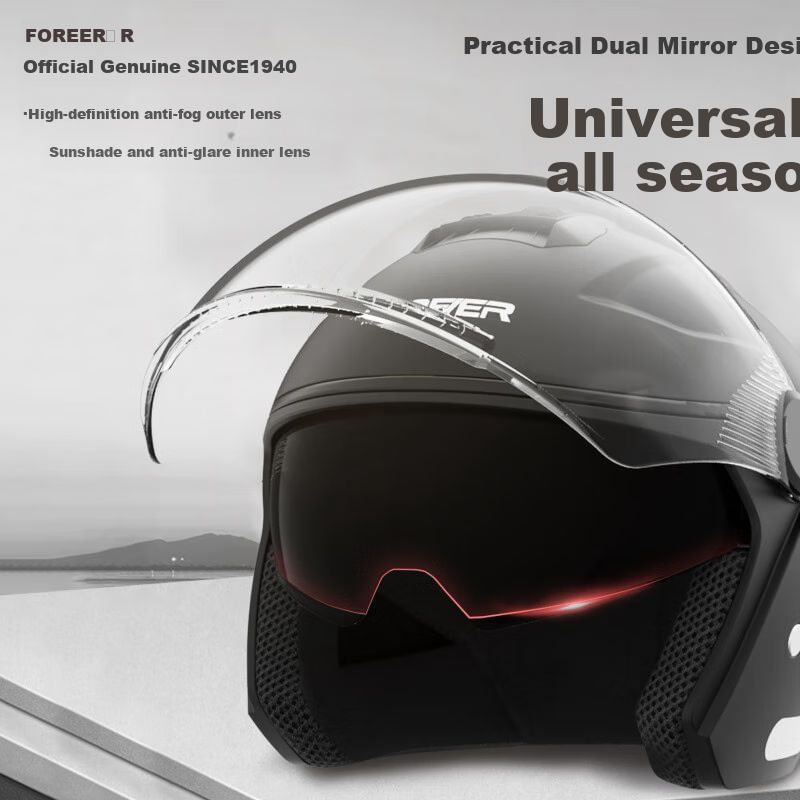 Casco para Moto Tipo 3/4 Multiestación 502 Doble Visor Negro Ceniza Antiempañante Cortavientos