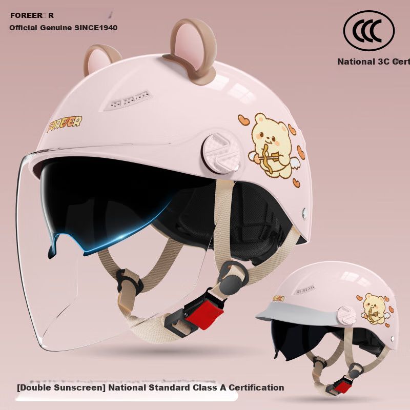 Casco para Moto Tipo Abierto Estilo Retro Multiestación Doble Espejo C05 Rosa Travieso Ajustable
