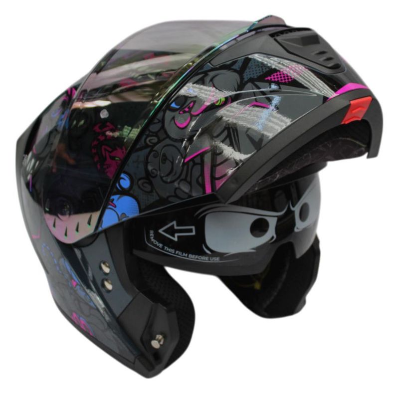 Casco Para Motociclista Abatible Doble Visor Lente Humo