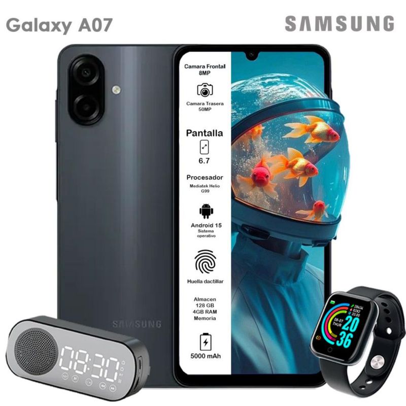 Celular Galaxy A07 128/4gb Dual Sim Negro con Bocina+ Smartwatch