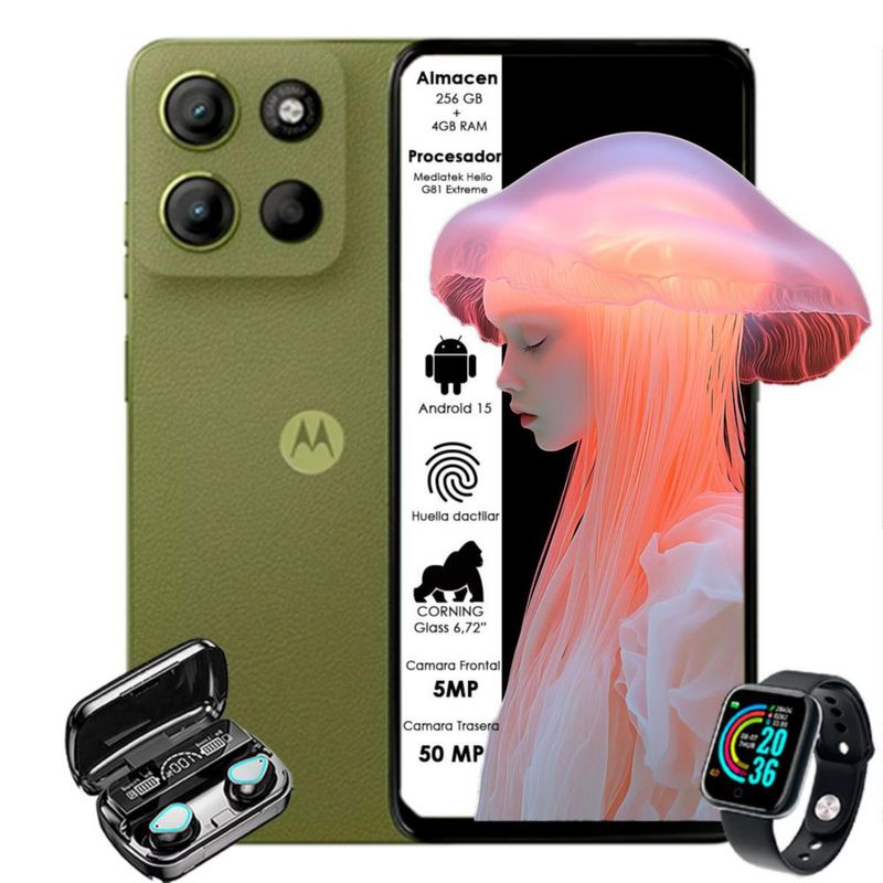 Celular Motorola Moto G15 256GB Dual sim 4GB RAM Verde Militar + Smartwatch y Audífonos inalámbricos