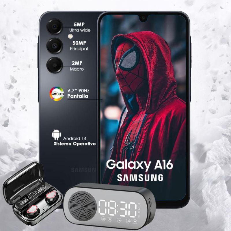Celular Samsung Galaxy A16 128GB 4GB RAM Dual sim Negro Super AMOLED, 90 Hz con Bocina y Audífonos inalámbricos